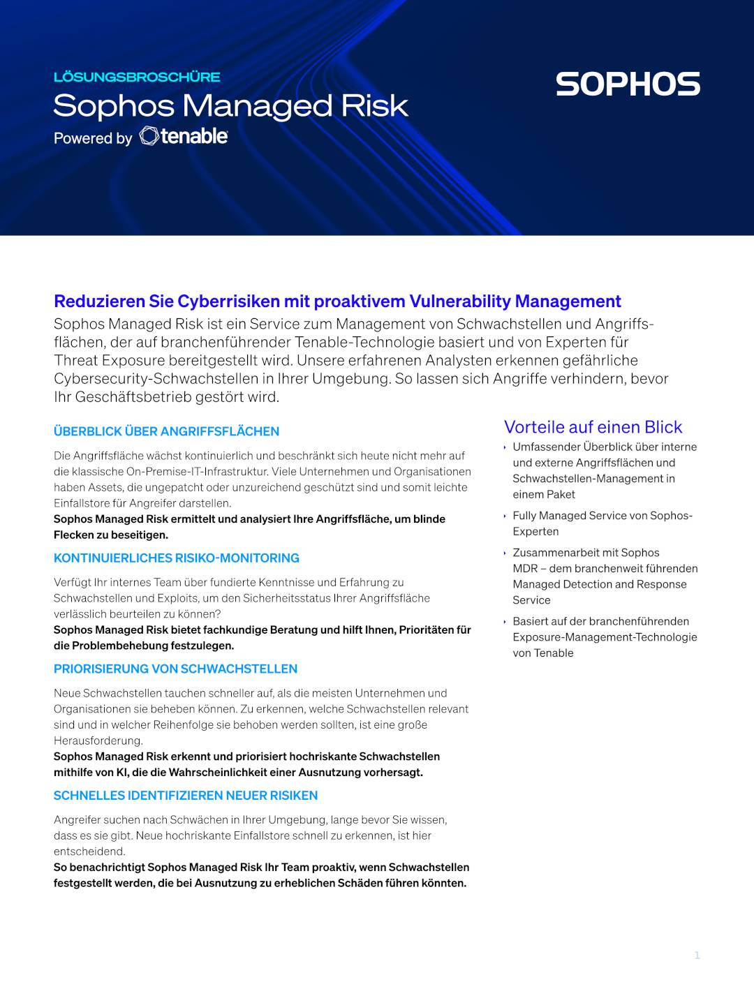 Sophos Managed Risk is a vulnerability and attack surface management service based on industry-leading Tenable technology and delivered by threat exposure experts. Our experienced analysts detect dangerous cybersecurity vulnerabilities in your environment. This helps prevent attacks before they disrupt your business. Find out more here!