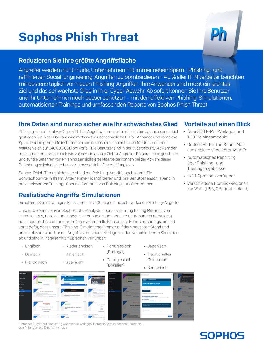 Attackers never tire of bombarding companies with new spam, phishing and sophisticated social engineering attacks - 41% of all IT employees report new phishing attacks at least every day. Your users are usually an easy target and the weakest link in your cyber defenses. Now you can better protect your users and your organization with Sophos Phish Threat's effective phishing simulations, automated training and comprehensive reporting. Find out more here!