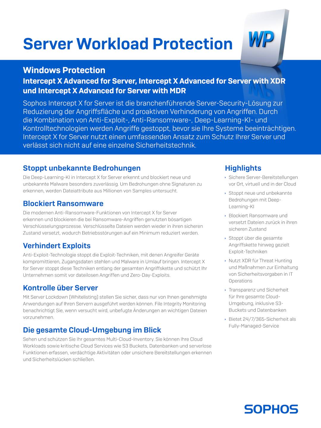 Sophos Intercept X for Server ist die branchenführende Server-Security-Lösung zur Reduzierung der Angriffsfläche und proaktiven Verhinderung von Angriffen. Durch die Kombination von Anti-Exploit-, Anti-Ransomware-, Deep-Learning-KI- und Kontrolltechnologien werden Angriffe gestoppt, bevor sie Ihre Systeme beeinträchtigen. Intercept X for Server nutzt einen umfassenden Ansatz zum Schutz Ihrer Server und verlässt sich nicht auf eine einzelne Sicherheitstechnik. Mehr dazu hier!