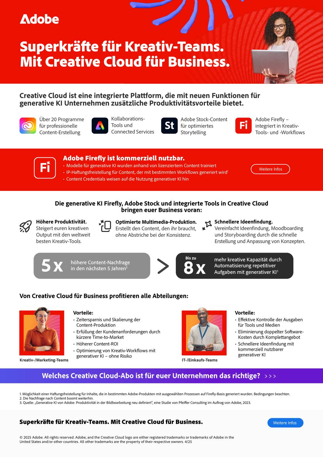Creative Cloud ist eine integrierte Plattform, die mit neuen Funktionen für generative KI Unternehmen zusätzliche Produktivitätsvorteile bietet.